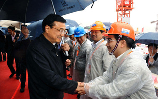 4月19日,中共中央政治局常委、國(guó)務(wù)院副總理李克強(qiáng)出席浙江三門(mén)核電一期工程開(kāi)工儀式,宣布開(kāi)工并看望工程建設(shè)者。這是李克強(qiáng)與工程建設(shè)者親切握手。李濤攝