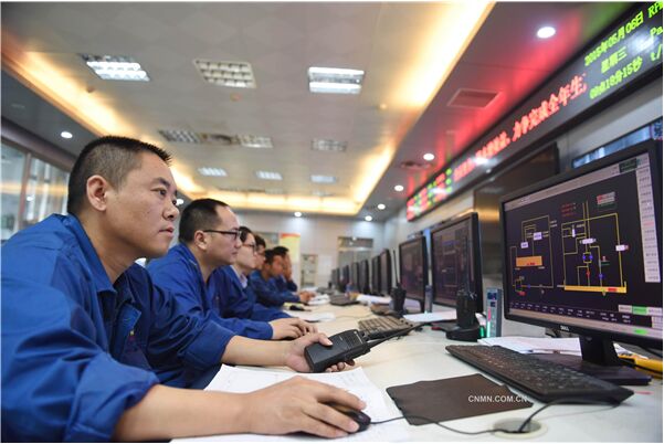 5月6日,工程技術(shù)人員在銅陵有色熱電項目控制室里監(jiān)控生產(chǎn)流程。銅陵是國家節(jié)能減排和循環(huán)經(jīng)濟(jì)“雙示范”城市,銅陵有色熱電項目總投資5.5億元,是銅陵市節(jié)能減排重大項目,采用2臺25兆瓦高溫高壓背壓機(jī)組,集中對銅陵市循環(huán)經(jīng)濟(jì)工業(yè)試驗園企業(yè)供熱、供電,淘汰園區(qū)18臺小鍋爐,年節(jié)約標(biāo)煤65700噸,年減少煙塵排放量141.4噸、二氧化硫排放量434.1噸、氮氧化物排放量106噸。