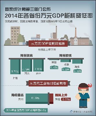 國(guó)家統(tǒng)計(jì)局、國(guó)家發(fā)展改革委、國(guó)家能源局13日發(fā)布公報(bào),公布了2014年各省區(qū)市萬(wàn)元地區(qū)生產(chǎn)總值(GDP)能耗降低率等指標(biāo)。