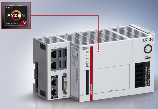 [2020年11月18日,德國(guó)] 倍福工業(yè) PC 產(chǎn)品系列又新添一款搭載 AMD Ryzen™ 處理器的 CX20x3 嵌入式控制器。這款性能強(qiáng)大的嵌入式既可搭載 TwinCAT 2 軟件,也可搭載 TwinCAT 3 軟件。 這款新型嵌入式控制器非常適合安裝 32 位和 64 位操作系統(tǒng),即 TwinCAT 2 和 TwinCAT 3。用戶(hù)可以選擇微軟 Windows 10 IoT Enterprise 2019 LTSC 或倍福自己推出的最新的 TwinCAT/BSD 操作系統(tǒng)。目前這款嵌入式控制器有兩個(gè)型號(hào)可供貨: - CX2033:搭載 AMD Ryzen™ V1202B CPU(時(shí)鐘頻率:2.3 GHz,雙核)的無(wú)風(fēng)扇型嵌入式控制器,無(wú)旋轉(zhuǎn)部件 - CX2043:高性能嵌入式控制器,安裝有滾珠軸承和速控風(fēng)扇,搭載 AMD Ryzen™ V1807B CPU(時(shí)鐘頻率:3.35 GHz,四核) AMD 處理器基于強(qiáng)大的 Zen 架構(gòu),將高計(jì)算能力和高時(shí)鐘頻率結(jié)合于一體。此外,它集成的顯卡不共用 CPU 緩存,具有出色的實(shí)時(shí)性。 CX20x3 的基本配置包括 2 個(gè)獨(dú)立的 Gbit 以太網(wǎng)口、4 個(gè) USB 3.1 Gen.2 接口和 1 個(gè) DVI-D接口。除了 CPU 和芯片組之外,基本配置還包括 8 GB 的 RAM?刂破骺蓮 CFast 閃存卡啟動(dòng)。CPU內(nèi)置128 kB NOVRAM, 用于未配備UPS情況下的斷電數(shù)據(jù)保存。現(xiàn)場(chǎng)總線(xiàn)和串行接口可作為可選件提供。CX2000 系列中的所有其它組件都可以通過(guò)兩側(cè)的多極接口進(jìn)行連接。其工作溫度范圍為 -25...+60 °C,這也使得系統(tǒng)可以在嚴(yán)苛的氣候條件下使用。