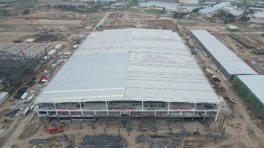 ▲ 8月15日,單晶硅一期項目廠房封頂