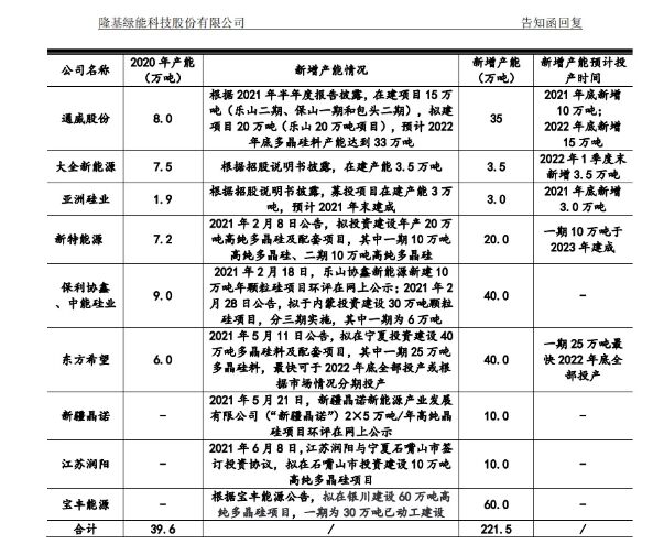 值得關(guān)注的是,由于硅料短缺帶來(lái)的供應(yīng)鏈不匹配等問(wèn)題使中下游企業(yè)“吃盡苦頭”,部分電池組件企業(yè)選擇親自下場(chǎng)擴(kuò)產(chǎn),通過(guò)與硅料龍頭“聯(lián)姻”的方式,以補(bǔ)齊硅料環(huán)節(jié)短板——通威、晶科能源宣布將共同投資年產(chǎn)4.5萬(wàn)噸高純晶硅項(xiàng)目、年產(chǎn)15GW硅片項(xiàng)目。特變電工、晶科、晶澳簽訂《投資建設(shè)年產(chǎn)10萬(wàn)噸高純多晶硅綠色能源循環(huán)經(jīng)濟(jì)項(xiàng)目暨內(nèi)蒙古新特硅材料有限公司增資擴(kuò)股協(xié)議書(shū)》。還有江蘇潤(rùn)陽(yáng),6月8日宣布將在石嘴山市投資130億元,建設(shè)年產(chǎn)10萬(wàn)噸的高純多晶硅項(xiàng)目。