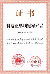 制造業(yè)單項冠軍旨在引導(dǎo)制造業(yè)企業(yè)專注創(chuàng)新和質(zhì)量提升,在更多細分產(chǎn)品領(lǐng)域形成全球市場、技術(shù)等方面領(lǐng)先的單項冠軍地位,提升我國制造業(yè)國際競爭力,促進我國產(chǎn)業(yè)整體在全球產(chǎn)業(yè)鏈中邁向高端,對中國制造企業(yè)來說這是至高的榮譽。雙良的溴化鋰吸收式冷/溫水機組早在2017年入選第二批制造業(yè)單項冠軍產(chǎn)品,2021年通過最新復(fù)核,中國制造業(yè)單項冠軍的入選是對雙良多年來精耕細作持續(xù)創(chuàng)新的肯定。