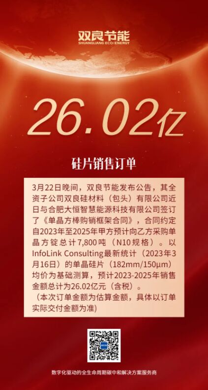 公司大尺寸單晶硅片產(chǎn)品市場(chǎng)開(kāi)拓順利,本合同的簽訂標(biāo)志著公司的大尺寸N型單晶硅相關(guān)產(chǎn)品獲得了下游優(yōu)質(zhì)客戶及市場(chǎng)的認(rèn)可,對(duì)公司N型單晶硅業(yè)務(wù)形成長(zhǎng)期穩(wěn)定的銷售有著積極影響。本合同履行期限為2023年至2025年,有利于提高公司本年度及未來(lái)公司N型單晶硅產(chǎn)品的銷售收入,并有利于穩(wěn)定經(jīng)營(yíng)現(xiàn)金流。