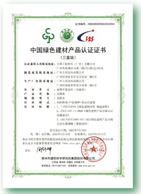 立邦500多款產(chǎn)品已獲得綠色建材認證