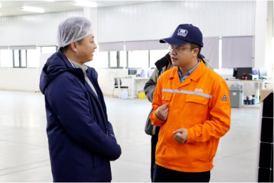 葉建群帶領(lǐng)王海生一行參觀了雙良新能科技高效光伏組件生產(chǎn)現(xiàn)場(chǎng)及雙良硅材料展廳,并對(duì)園區(qū)整體情況、生產(chǎn)流程及超級(jí)光能高效光伏組件產(chǎn)品優(yōu)勢(shì)進(jìn)行了詳細(xì)的介紹。