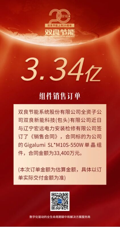 雙良節(jié)能簽訂組件訂單,金額3.34億