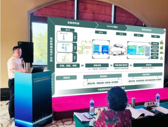 中氫源安聯(lián)合創(chuàng)始人、總裁朱成博士出席論壇,并發(fā)表了精彩的主題演講。他指出,盡管氫是宇宙中最常見(jiàn)的元素之一,但由于其活性極強(qiáng)和儲(chǔ)運(yùn)成本較高的因素,大規(guī)模應(yīng)用一直面臨挑戰(zhàn)。為此,中氫源安注重自主研發(fā)和技術(shù)創(chuàng)新,不斷深化研究并升級(jí)設(shè)備、產(chǎn)品及系統(tǒng),開(kāi)發(fā)出適合大規(guī)模運(yùn)輸?shù)陌踩袡C(jī)液儲(chǔ)運(yùn)氫技術(shù),逐步開(kāi)拓更多應(yīng)用場(chǎng)景。