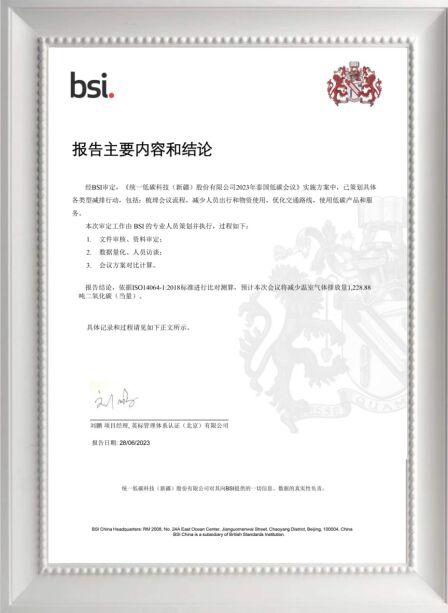 據(jù)介紹,為了保證低碳措施的有效性和科學(xué)性,統(tǒng)一委托BSI(英國標(biāo)準(zhǔn)協(xié)會)對會議實(shí)施方案進(jìn)行了碳足跡認(rèn)證。BSI是全球領(lǐng)先的標(biāo)準(zhǔn)制定、認(rèn)證和培訓(xùn)機(jī)構(gòu),擁有豐富的碳管理經(jīng)驗(yàn)和專業(yè)技術(shù)。經(jīng)BSI驗(yàn)證,依據(jù)ISO14064-1:2018標(biāo)準(zhǔn)進(jìn)行比對測算,認(rèn)定統(tǒng)一低碳大會實(shí)施方案將減少溫室氣體排放量1,228.88噸二氧化碳(當(dāng)量)。