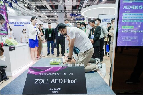 有趣的互動式體驗在旭化成的各個展示區(qū)均有涉及,如“健康中國”區(qū)域,microza®展臺設(shè)置有過濾裝置,可以讓觀眾更直觀的看到過濾前后的對比;ZOLL AED Plus ®體外除顫儀可以現(xiàn)場操作體驗,感受使用的便捷性和對施救成功率的提升;在“數(shù)字發(fā)展”區(qū)域,VELVET SOUND for Cars展臺放置了兩個耳機,讓觀眾實際感受“身臨其境般”的聲音體驗;Akliteia® 展臺則設(shè)有掃描裝置,可以讓觀眾現(xiàn)場掃標(biāo)簽,了解體驗旭化成的全新防偽解決方案;在“綠色社會”區(qū)域,觀眾可以觸摸感受Bemliese®的材料質(zhì)感。豐富多樣的展品體驗,為旭化成展臺帶來了絡(luò)繹不絕的觀眾。