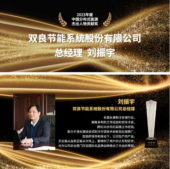 雙良節(jié)能系統(tǒng)股份有限公司總經(jīng)理劉振宇榮獲“中國分布式能源杰出人物貢獻(xiàn)獎(jiǎng)”殊榮。