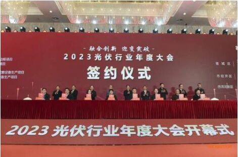 本次大會分為集中活動(dòng)和分項(xiàng)活動(dòng)兩個(gè)部分。集中活動(dòng)包括2023光伏行業(yè)年度大會開幕式、2023年中國光伏行業(yè)企業(yè)家座談會(第三屆理事會擴(kuò)大會議)、2023光伏行業(yè)年度大會主論壇等;分項(xiàng)活動(dòng)設(shè)置了光伏供應(yīng)鏈配套發(fā)展論壇、光伏系統(tǒng)質(zhì)量安全提升研討會等。開幕式現(xiàn)場,中國光伏行業(yè)協(xié)會、天合光能股份有限公司分別與宿遷市人民政府簽訂了戰(zhàn)略合作協(xié)議。22個(gè)項(xiàng)目進(jìn)行簽約,協(xié)議投資430.16億元,其中50億元以上項(xiàng)目4個(gè)。