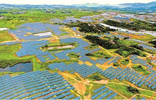 6月30日,30多萬(wàn)塊光伏電池板在陽(yáng)光照耀下熠熠生輝。6月29日凌晨5時(shí)許,湖北省規(guī)模最大的光伏扶貧發(fā)電項(xiàng)目——大悟縣芳畈鎮(zhèn)90兆瓦光伏扶貧電站正式并網(wǎng)發(fā)電。該項(xiàng)目由大悟縣政府和省高投共同投資7.2億元建成,占地3500畝。據(jù)測(cè)算,該光伏扶貧電站年均發(fā)電量2.21億千瓦時(shí),可實(shí)現(xiàn)年凈利潤(rùn)3900萬(wàn)元,所得收益將全部用于精準(zhǔn)扶貧,讓大悟縣3600戶貧困戶持續(xù)25年受益。