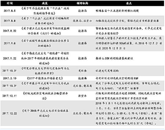 光伏制造各環(huán)節(jié)成本持續(xù)下降,平價(jià)上網(wǎng)即將來臨。2018H1,硅料、硅片、電池片、組件環(huán)節(jié)的制造成本(含稅)已降至65.00 元/kg、3.45 元/片、1.31 元/W、2.27 元/W,系統(tǒng)成本約5.4 元/W。補(bǔ)貼退坡倒逼光伏制造企業(yè)通過產(chǎn)能擴(kuò)張和技術(shù)進(jìn)步不斷降低生產(chǎn)成本,平價(jià)上網(wǎng)即將來臨。平價(jià)上網(wǎng)假設(shè)下,光伏各環(huán)節(jié)成本將進(jìn)一步下降,硅料、硅片、電池片、組件環(huán)節(jié)的制造成本(含稅)分別約為45.00元/kg、2.10元/片、0.77 元/W、1.56元/W,系統(tǒng)成本約3.29元/W。 531 政策短期沖擊明顯,有利于推動平價(jià)上網(wǎng)。2018年5月31日,三部委聯(lián)合發(fā)布《關(guān)于2018年光伏發(fā)電有關(guān)事項(xiàng)的通知》,政策影響主要體現(xiàn)在以下兩個方面:從短期來看,指標(biāo)限制導(dǎo)致我國2018 年光伏裝機(jī)需求下滑。根據(jù)政策安排,2018年暫不安排通光伏電站指標(biāo),安排10GW左右規(guī)模用于分布式光伏項(xiàng)目。從中長期來看,光伏補(bǔ)貼退有望推動平價(jià)上網(wǎng)加速實(shí)現(xiàn)。政策規(guī)定,自發(fā)文之日起,新投運(yùn)的光伏電站標(biāo)桿上網(wǎng)電價(jià)每千瓦時統(tǒng)一降低0.05元;新投運(yùn)的、采用“自發(fā)自用、余電上網(wǎng)”模式的分布式光伏發(fā)電項(xiàng)目,全電量度電補(bǔ)貼標(biāo)準(zhǔn)降低0.05元。光伏補(bǔ)貼退坡能夠推動企業(yè)通過技術(shù)進(jìn)步降低成本,光伏平價(jià)上網(wǎng)即將到來。 配額制即將落地,或?qū)⒅ζ絻r(jià)上網(wǎng)加速。2018年9月,發(fā)改委下發(fā)《可再生能源電力配額及考核辦法(第二次征求意見稿)》,提出建立可再生能源約束性消納機(jī)制,規(guī)劃各省級行政區(qū)2018、2020年可再生能源電力消費(fèi)比例,對保障小時數(shù)以內(nèi)的集中式風(fēng)電、光伏電量以及其他非水可再生能源發(fā)電量施行全額保障性收購(考慮技術(shù)等限制因素最多限電5%)。配額制若能落地,必將提高光伏電站年利用小時數(shù),進(jìn)一步降低度電成本,助力平價(jià)上網(wǎng)加速。近期光伏政策一覽表如下: