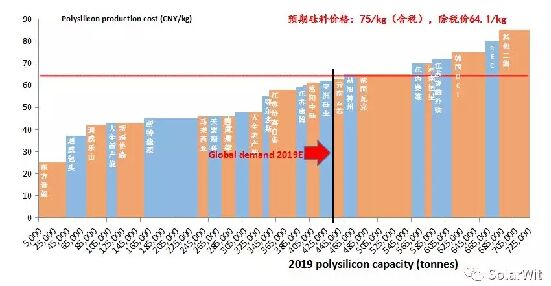 可以看到,要想滿足2019年全行業(yè)的硅料需求,還需要亞洲硅業(yè)、洛陽中硅等產(chǎn)能維持運轉(zhuǎn)。但是韓國OCI已經(jīng)在平衡曲線之外,再好的需求都不能挽救韓國OCI的命運,命運同樣難以逆轉(zhuǎn)的企業(yè)還有賽維LDK、國電晶陽、江蘇協(xié)新外購電力部分產(chǎn)能。德國瓦克雖然也在供求平衡曲線之外,但是由于瓦克相當大部分的產(chǎn)能是用于生產(chǎn)半導體級別的硅料,瓦克的產(chǎn)能不會輕易退出。