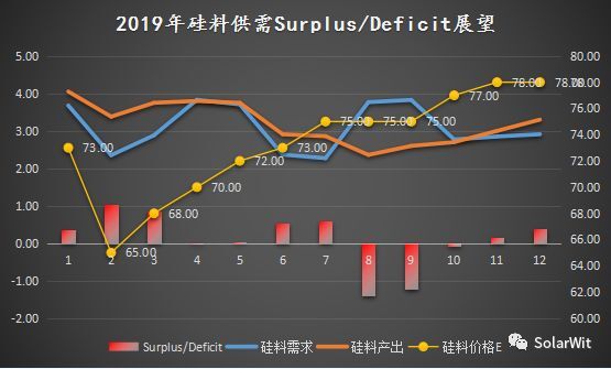 在44.3萬噸需求假設(shè)下,2019年硅料供給平衡曲線為: