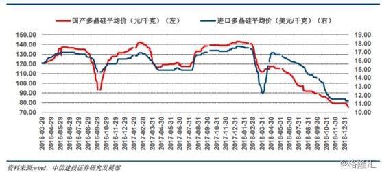 光伏行業(yè)上游硅料的代表企業(yè)包括江蘇中能、通威、東方希望等;中游制造商中,硅片可以關注A股市場隆基股份、中環(huán)股份,港股市場的保利協(xié)鑫,電池片中通威的優(yōu)勢較大。組件方面是產(chǎn)業(yè)鏈中最為被動的環(huán)節(jié),面臨上下游擠壓,盈利能力偏弱,且競爭格局變化較快。而下游電站、EPC等相關企業(yè)包括國電投、協(xié)鑫新能源、中廣核等。 產(chǎn)業(yè)鏈價格方面,根據(jù)PVInfolink,上周產(chǎn)業(yè)鏈價格相對平穩(wěn),硅料環(huán)節(jié)由于檢修以及通威包頭工廠事故,供給有所收縮,價格有所上升,全行業(yè)新增硅料產(chǎn)能將在5月左右得到完全釋放,二季度需求不景氣,硅料環(huán)節(jié)價格有望見底并在三季度迎來持穩(wěn)回升。 2018年第四季度至2019年一季度,光伏海外需求旺盛引致國內硅片、硅料有所提價,19Q1印度、日本搶裝行情結束后可能導致需求暫時空檔,二季度產(chǎn)業(yè)景氣度將有所回調,待三四季度國內旺季來臨時,產(chǎn)業(yè)鏈價格將較為穩(wěn)定。 19年補貼征求意見稿有望加速戶用項目的推進,一定程度上緩解二季度較低需求。中長期來看,2018年國內裝機44GW,隨著政策回暖以及平價項目打開的增量空間,國內需求有望繼續(xù)提升,龍頭企業(yè)業(yè)績與估值將會互相應證,反應股價的持續(xù)提升。 不過,需要警惕的是,在光伏出口方面,4月4日,美國國際貿(mào)易委員會決定對我國光伏電池片及其下游產(chǎn)品發(fā)起337調查。晶科能源有限公司、隆基綠能科技股份有限公司等7家中國企業(yè)在列。盡管一些業(yè)內人士對此次337調查的結局持樂觀態(tài)度。不過,突如其來的專利問題,必將在一定程度上帶給高速發(fā)展的中國光伏產(chǎn)業(yè)以一些影響和深度思考。