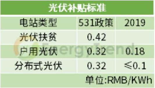 競價(jià)配置項(xiàng)目 上網(wǎng)指導(dǎo)電價(jià):Ⅰ類地區(qū)0.4元/千瓦時(shí)、Ⅱ類地區(qū)0.45元/千瓦時(shí)、Ⅲ類地區(qū)0.55元/千瓦時(shí)。 集中式 531政策后,由于暫不安排2018年普通光伏電站建設(shè)規(guī)模,以及2019年度光伏政策未下發(fā)的不確定下,目前一季度光伏裝機(jī)容量為2.4GW。 2019年度的集中式光伏電站上網(wǎng)電價(jià)通過市場競爭方式確定,將三類資源區(qū)集中式電站標(biāo)桿上網(wǎng)電價(jià)改為指導(dǎo)價(jià),不得超過所在資源區(qū)指導(dǎo)價(jià)。 工商業(yè)分布式 2019年7月開始,工商業(yè)分布式光伏項(xiàng)目一律通過競價(jià)方式進(jìn)行指標(biāo)配置,無論是“自發(fā)自用,余量上網(wǎng)”的還是“全額上網(wǎng)”的項(xiàng)目,市場競爭形成的價(jià)格既不得超過指導(dǎo)價(jià)。 其中“自發(fā)自用,余電上網(wǎng)”的項(xiàng)目按全電量0.1元補(bǔ)貼,補(bǔ)貼標(biāo)準(zhǔn)也不得超過每千瓦時(shí)0.1元。 已明確規(guī)模項(xiàng)目 戶用光伏 2018年531政策中,能源局明確了分布式規(guī)模10GW,但在今年戶用單獨(dú)配置的情況下,根據(jù)2019年一季度分布式光伏總量2.8GW,按財(cái)政部30億的補(bǔ)貼中,戶用7.5億配置來看,戶用光伏在0.18元的高補(bǔ)貼,擬定3.5GW的裝機(jī)規(guī)模下,還是極具吸引力的。 光伏扶貧 由于光伏扶貧項(xiàng)目不在財(cái)政部下發(fā)的30億元補(bǔ)貼的大盤子中,按單獨(dú)補(bǔ)貼計(jì)算,剩下的22.5億元光伏補(bǔ)貼將流入競價(jià)配置項(xiàng)目中。 而早些時(shí)候發(fā)布的“十三五”第二批光伏扶貧電站中提到,本次下達(dá)的光伏扶貧項(xiàng)目原則上應(yīng)在2019年底前全容量建成并網(wǎng),“十三五”第一批光伏扶貧項(xiàng)目須在2019年6月30日(含)前全容量建成并網(wǎng)。未按期建成并網(wǎng)的項(xiàng)目視為自動(dòng)放棄,不再納入國家光伏扶貧目錄。 結(jié)合國家能源局第二批光伏扶貧電站下達(dá)的1.67GW裝機(jī)規(guī)模,加上2017年公布第一批扶貧電站4.2GW的裝機(jī)規(guī)模中未并網(wǎng)的項(xiàng)目,在上網(wǎng)電價(jià)仍維持每千瓦時(shí)0.65元、0.75元、0.85元執(zhí)行的情況下,光伏扶貧項(xiàng)目需求動(dòng)能已全面開啟。