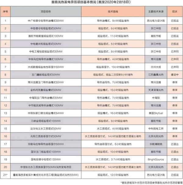 “十三五”重點建設(shè)光熱發(fā)電示范項目主要有兩個目的:一個是擴大光熱發(fā)電產(chǎn)業(yè)規(guī)模,把光熱發(fā)電從基本上還處于示范性的技術(shù)和成本水平,逐漸發(fā)展至能滿足規(guī)模化發(fā)展的程度;另外一個是把國際的先進技術(shù)在國內(nèi)進行應(yīng)用,讓國內(nèi)自主研發(fā)的技術(shù)也有一個應(yīng)用和起步的環(huán)境。 截至2020年2月,我國光熱示范項目共有8個已投運或并網(wǎng)運行,共計50萬千瓦(如表2所示);全國累計已并網(wǎng)光熱發(fā)電54.43萬千瓦,其中“十三五”期間建成53.04萬千瓦,與“十三五”500萬千瓦的規(guī)劃目標相差甚遠,完成率僅為10.61%。 二、困境與機遇 經(jīng)過“十二五”和“十三五”十年的發(fā)展,特別是依托首批光熱發(fā)電示范項目,我國已形成了初具規(guī)模光熱發(fā)電全產(chǎn)業(yè)鏈,設(shè)備和材料國產(chǎn)化率達90%以上,孕育出一批有國際競爭力的本土企業(yè)。但是從“十二五”和“十三五”規(guī)劃指標完成情況來看,光熱的發(fā)展是遠遠低于預(yù)期。2020年是“十三五”收官之年,也是“十四五”規(guī)劃發(fā)展的前瞻之年。 當前光熱面臨的困境是全方位的。首批20個示范項目中有4個退出,8個停滯,究其原因,主要有資金問題、技術(shù)問題、股權(quán)問題、用地問題等。其中資金問題是最主要的,光熱產(chǎn)業(yè)尚未形成較大規(guī)模,造價成本居高不下。據(jù)國際能源署相關(guān)數(shù)據(jù)顯示,目前全球已投產(chǎn)光熱發(fā)電項目的單位造價為4~9美元/W,而光伏和風電的單位造價已降至0.8美元/W以內(nèi),面對如此高昂的投資費用,很多企業(yè)都是望而卻步。 另一個重要原因就是技術(shù)問題,根據(jù)聚光集熱的不同方式,衍生出不同的光熱發(fā)電技術(shù)。但對于每種發(fā)電技術(shù),都缺少一定規(guī)模的同類技術(shù)項目去交叉驗證技術(shù)的可行性和探索改進升級技術(shù)的可能性。相反,大部分的光熱技術(shù)都是“孤軍奮戰(zhàn)”,大大的提高了光熱產(chǎn)業(yè)的技術(shù)試錯成本,降低了光熱產(chǎn)業(yè)的規(guī)模發(fā)展效應(yīng)。 近年來,在新能源固定電價補貼政策的支持下,我國新能源發(fā)電行業(yè)飛速發(fā)展,截至2019年底,我國已開發(fā)的風能裝機為2.1億千瓦,光伏裝機為2.04億千瓦。當前,發(fā)電欠補貼問題卻成為了制約新能源快速發(fā)展的首要原因。 截至2018年底,全國可再生能源的欠補已超過2000億,預(yù)計2019年會超過3000億!蛾P(guān)于促進非水可再生能源發(fā)電健康發(fā)展的若干意見》,明確指出“新增光熱項目不再納入中央財政補貼范圍”。與光伏、風電相比,光熱可謂是生不逢時,還沒走上成熟的產(chǎn)業(yè)發(fā)展道路就將斷奶,不得不“提前”尋求自力更生。 盡管困難重重,但是在國家能源安全新戰(zhàn)略的大背景下,光熱也面臨著不可多得的發(fā)展機遇。 光熱與風電、光伏互補應(yīng)用,一方面能夠保障出力的平滑性,為電網(wǎng)提供穩(wěn)定的電源輸出,優(yōu)化風電和光伏的電能質(zhì)量;另一方面能夠減少棄風棄光,提高風光資源的利用小時數(shù),降低風電和光伏的建設(shè)成本。探索光熱與風電、光伏互補應(yīng)用是助力我國新能源轉(zhuǎn)型發(fā)展的新舉措,也是光熱發(fā)展的新機遇。 “一帶一路”倡議給光熱帶來重大發(fā)展機遇。從地域分布來看,陸上絲綢之路經(jīng)濟帶向西北地區(qū)延伸,海上絲綢之路則途徑南亞、印度、中東、北非地區(qū),這些區(qū)域大部分是發(fā)展中國家,經(jīng)濟發(fā)展水平相對較低,電力供給不足,但是擁有得天獨厚的光熱資源。 光熱項目的合作建設(shè)可以作為重要的載體增進“一帶一路”沿線各國之間的經(jīng)貿(mào)聯(lián)系與和平發(fā)展。各國的通力合作也能夠為光熱項目的建設(shè)提供充足資金、先進技術(shù)和優(yōu)秀人才,有利于發(fā)揮各國在光熱產(chǎn)業(yè)鏈的比較優(yōu)勢,實現(xiàn)互利共贏。 近年來,以上海電氣集團股份有限公司、中國葛洲壩集團股份有限公司和山東電力建設(shè)第三工程有限公司為代表的我國總承包工程企業(yè)在國際光熱發(fā)電市場屢有斬獲,將國內(nèi)玻璃、鋼材、控制設(shè)備、機電裝備及基礎(chǔ)建設(shè)能力等優(yōu)勢商品輸出國門,走向世界。 三、建言“十四五” “十四五”是光熱發(fā)展的關(guān)鍵期,光熱能否行穩(wěn)致遠,很大程度取決于未來五年光熱能否形成規(guī);徒(jīng)濟性的產(chǎn)業(yè)。針對當前光熱發(fā)展的困境與機遇,結(jié)合我國能源行業(yè)的最新政策,筆者關(guān)于光熱發(fā)展“十四五”規(guī)劃提出以下六點建議。 1. 盤活存量光熱項目 盤活存量光熱項目是“十四五”規(guī)劃的一項重要任務(wù)!蛾P(guān)于促進非水可再生能源發(fā)電健康發(fā)展的若干意見》明確指出,新增光熱項目不再納入中央財政補貼范圍,按規(guī)定完成核準(備案)并于2021年12月31日前全部機組完成并網(wǎng)的存量光熱項目,納入補貼范圍。因此盤活首批光熱示范項目中尚未建成的存量項目是非常有必要和緊急的。截至2020年2月,全國范圍還有13個光熱項目處于建設(shè)中和停滯狀態(tài),共計89.9萬千瓦。這13個項目若能順利推進,光熱產(ch