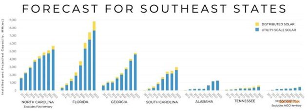 據(jù)南方清潔能源聯(lián)盟(SACE)的一份最新報(bào)告,美國(guó)東南部各州的太陽(yáng)能將在2023年從現(xiàn)在的10吉瓦左右增長(zhǎng)到近25吉瓦。報(bào)告作者Bryan Jacob在近期一次網(wǎng)絡(luò)研討會(huì)中表示,到2023年,太陽(yáng)能將占該地區(qū)發(fā)電總量的5%。 分布式太陽(yáng)能預(yù)計(jì)將獲得適度增長(zhǎng)。SACE根據(jù)公開(kāi)發(fā)布的報(bào)告和專(zhuān)有預(yù)測(cè)得出此次推測(cè)。