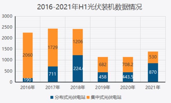 供應(yīng)鏈價(jià)格對(duì)國內(nèi)光伏電站終端需求的抑制作用在上半年裝機(jī)數(shù)據(jù)中體現(xiàn)明顯,在上游價(jià)格持續(xù)上漲的高壓下,光伏電站下游裝機(jī)需求并不樂觀,尤其是集中式地面電站裝機(jī)慘淡,創(chuàng)下近六年來的裝機(jī)最低規(guī)模。同時(shí),這也是近六年的半年度裝機(jī)中,分布式光伏首次大規(guī)模超過地面電站。