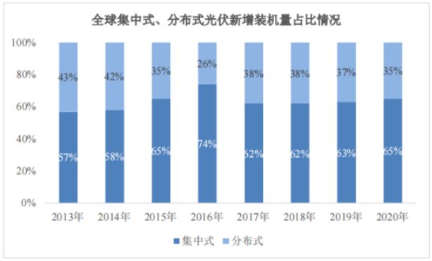 全球集中式、分布式光伏新增裝機量占比情況,據(jù)來源:IEA、方正證券研究所、天風證券