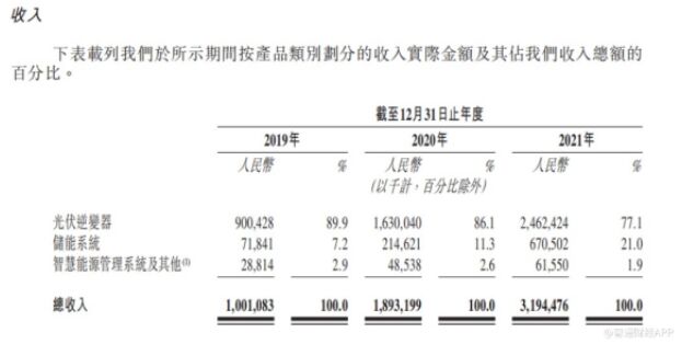 此外,根據(jù)分布式光伏逆變器龍頭企業(yè)古瑞瓦特招股書數(shù)據(jù)顯示,2019-2021年儲能系統(tǒng)營收分別為0.72億、2.15億、6.7億,均呈高速增長態(tài)勢,儲能系統(tǒng)營收占比也越來越高。