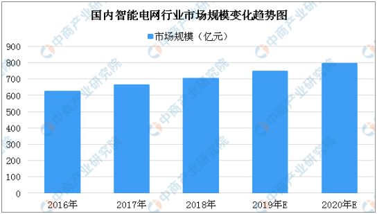 智能電網(wǎng)行業(yè)前景廣闊 自從2009年中國(guó)國(guó)家電網(wǎng)公司公布智能電網(wǎng)計(jì)劃以來(lái),如今已經(jīng)走進(jìn)了第三階段,即引領(lǐng)提升階段。智能電網(wǎng)是當(dāng)今世界電力、能源產(chǎn)業(yè)發(fā)展變革的體現(xiàn),是實(shí)施新的能源戰(zhàn)略和優(yōu)化能源資源配置的重要平臺(tái)!盎ヂ(lián)網(wǎng)+”的風(fēng)口下,智能電網(wǎng)必將開(kāi)啟能源與互聯(lián)網(wǎng)有機(jī)結(jié)合的大門(mén),智能電網(wǎng)布局也成為了國(guó)家搶占未來(lái)低碳經(jīng)濟(jì)制高點(diǎn)的重要戰(zhàn)略措施。 隨著智能電網(wǎng)行業(yè)的高速發(fā)展,據(jù)預(yù)測(cè),到2020年我國(guó)智能電網(wǎng)行業(yè)市場(chǎng)規(guī)模將近800億元,智能電網(wǎng)行業(yè)前景十分廣闊。